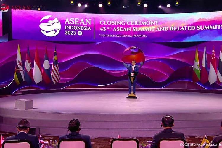 “Dengan demikian KTT ke-43 ASEAN dan KTT lainnya secara resmi saya tutup,” kata Presiden Jokowi dalam acara penutupan KTT ke-43 ASEAN di Jakarta Convention Center (JCC) pada Kamis (7/9/2023).